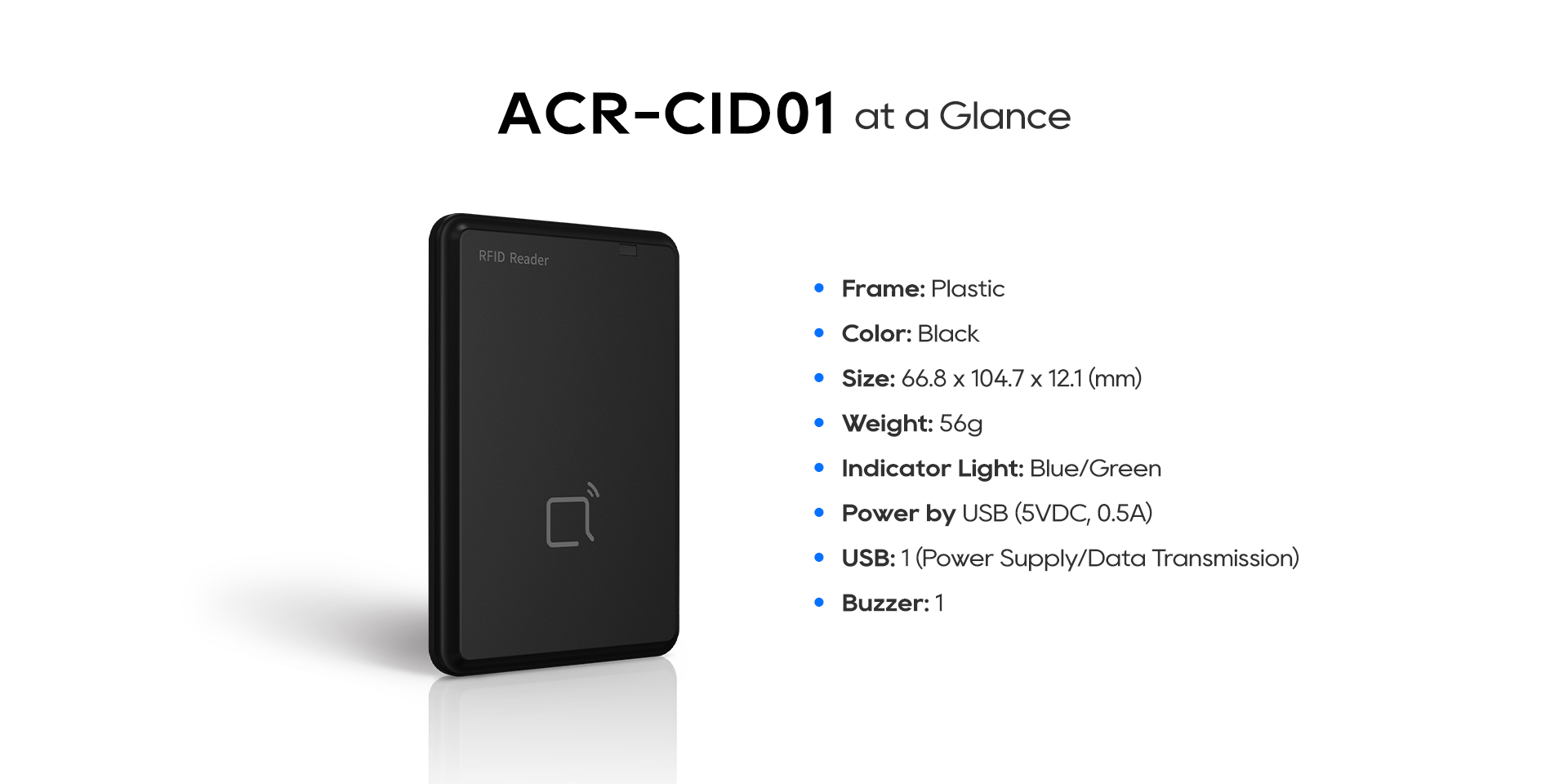 Akuvox's ACR-CID01 is an efficient and multifunctional desktop card reader, designed specifically for modern access control systems. It supports connection to a computer via a USB interface to quickly read information on Bkey/RFID access cards.