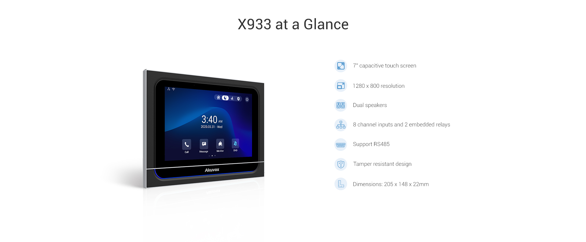 The first product of Akuvox’s X series indoor monitor, Akuvox X933 strikes a perfect balance between fashion and technology.