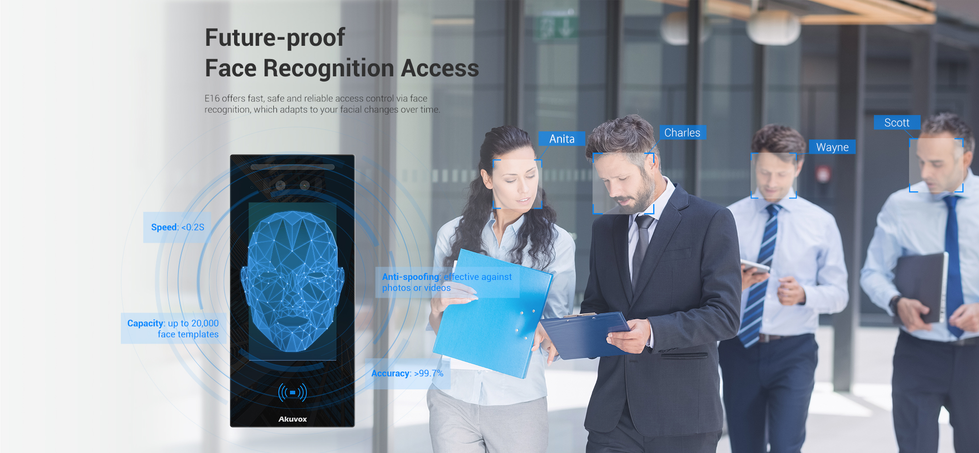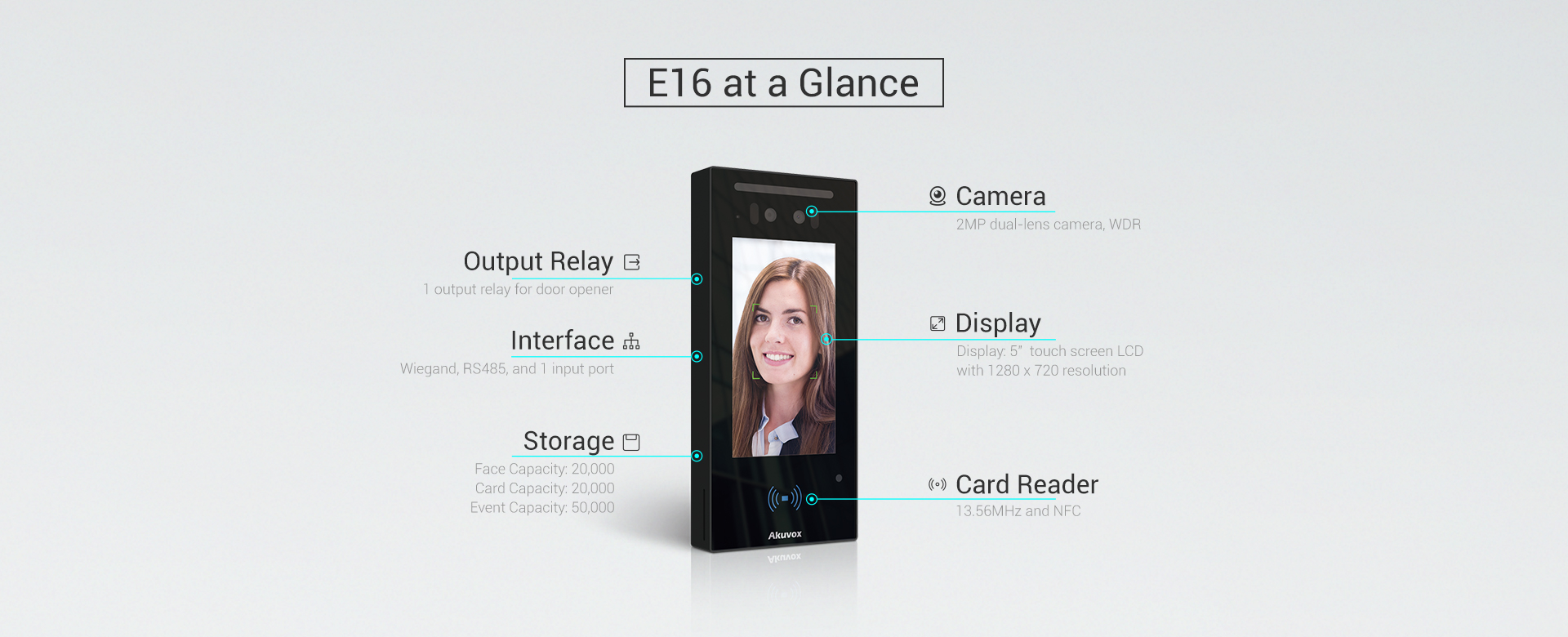 E16 is a budget-friendly face recognition door phone, which offers excellent intercom communication and flexible access control methods like AI-powered face recognition and mobile app. It is typically used in commercial and residential applications.