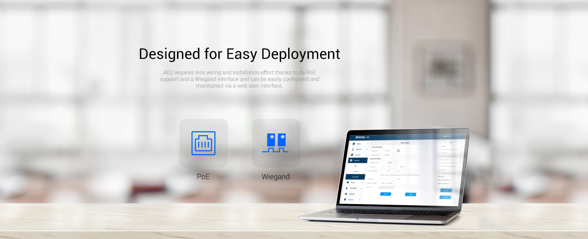 A02 is an IP-based access control terminal that combines door controller and card reader in one device. It supports PIN codes, RFID cards, and mobile access via NFC, offering users flexibility in credentials options.