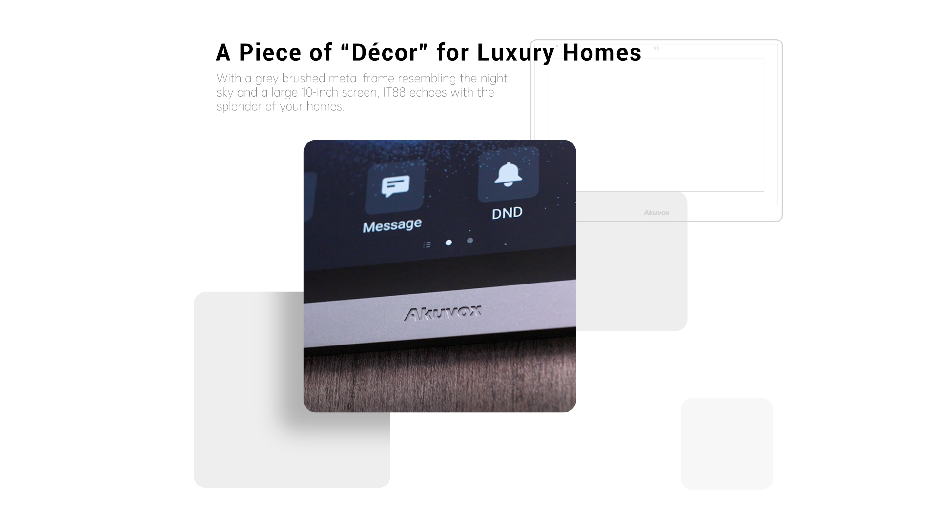 Splendid design, smart home integration, and high-performance CPU, Akuvox IT88 10" indoor monitor is perfect for luxury homes.