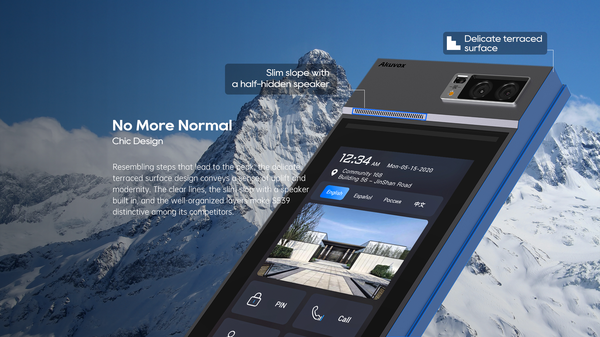 Akuvox S539 video door phone, featuring a terraced surface, a multi-functional camera module, and over 15 access control methods, is innovatively built in with an avatar. More convenient, more secure, and more interactive. The Metaverse-Intercom era is coming with S539.