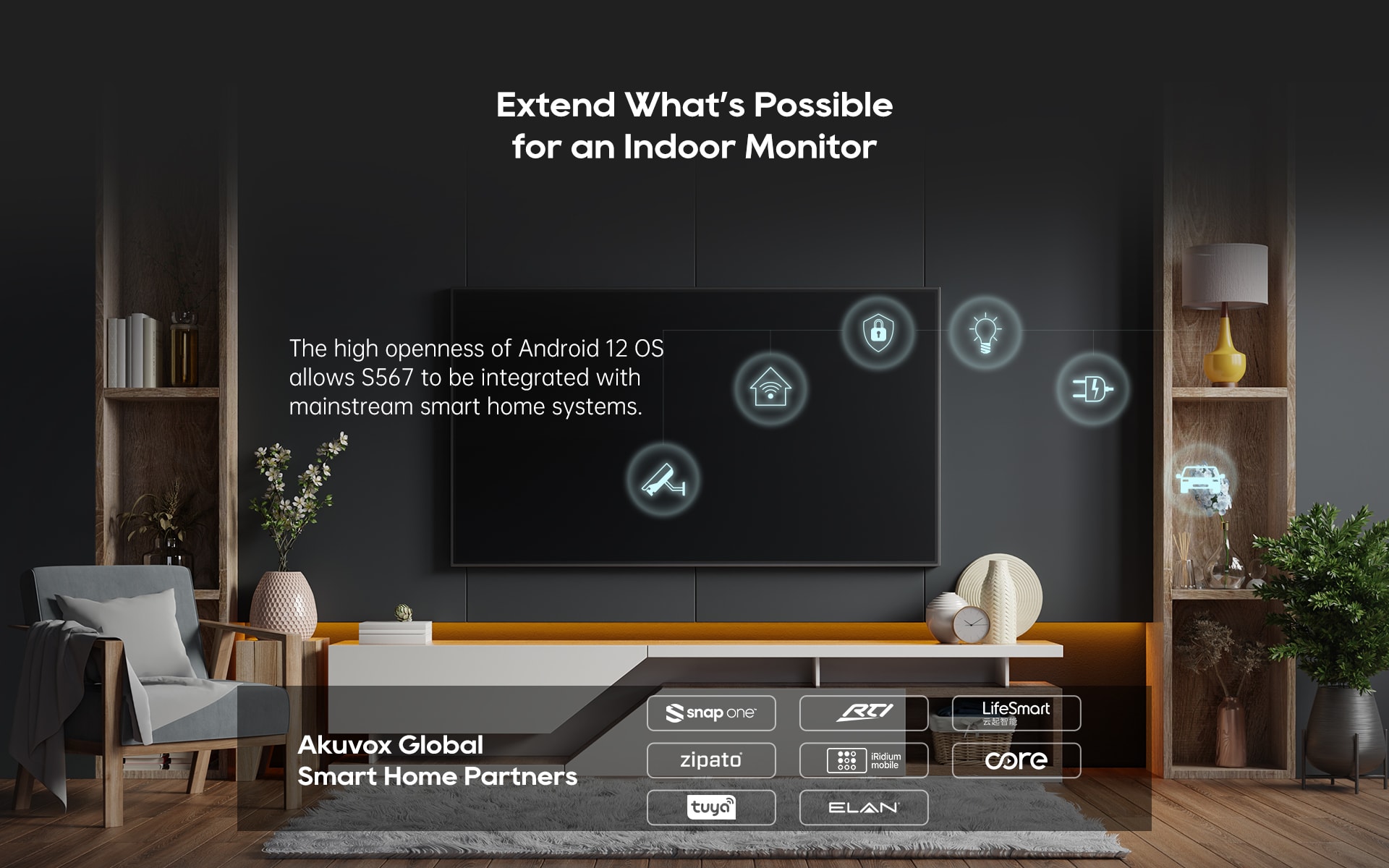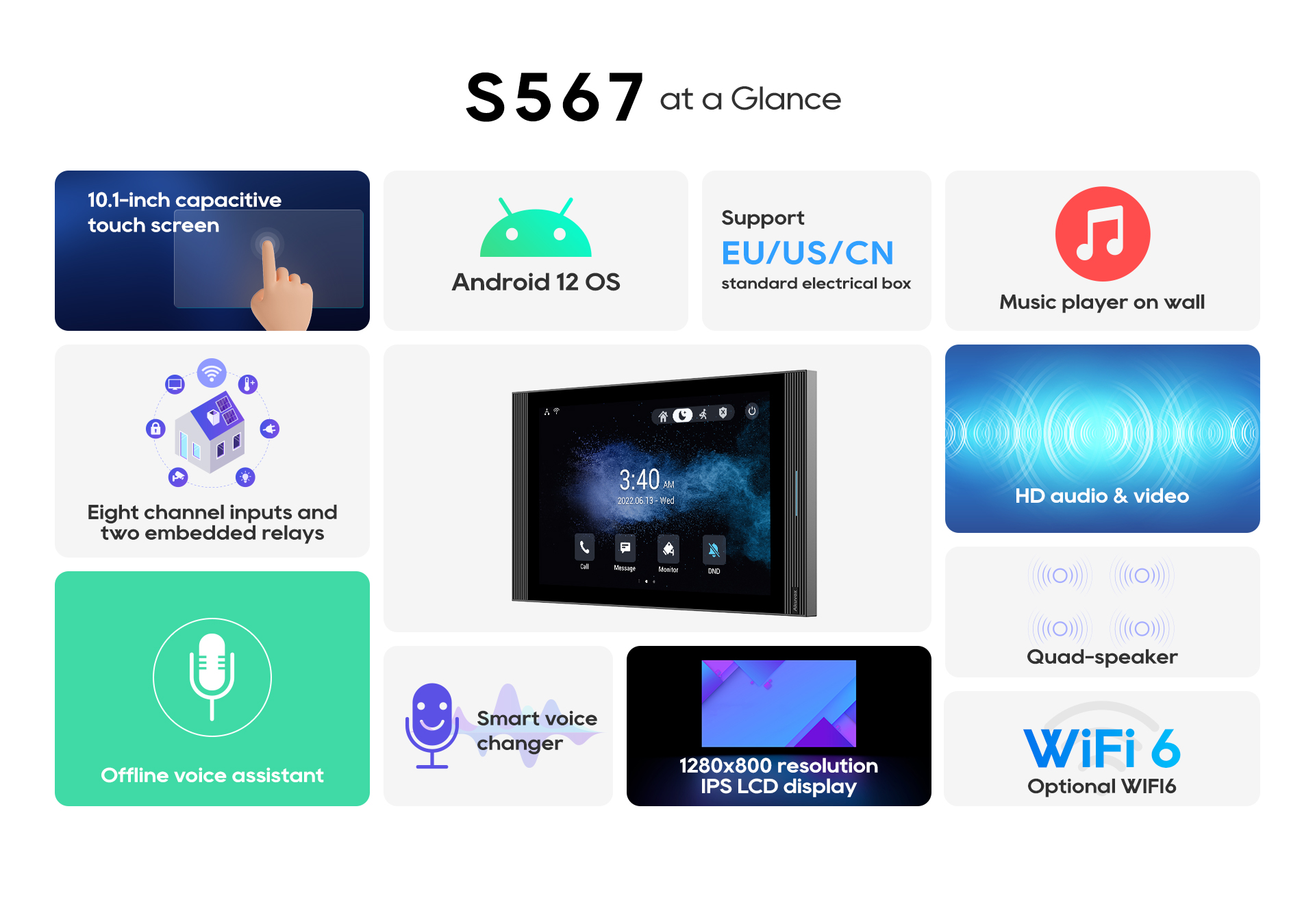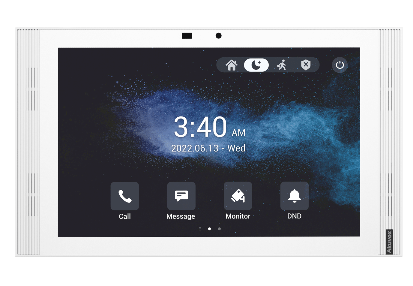 Akuvox S567 10'' indoor monitor runs on the industry-leading Android 12 OS, and is equipped with Wi-Fi 6 communication technology. The dual mics and quad speakers together provides superior audio quality. With the minimalist design, S567 blends well into any modern interior design.