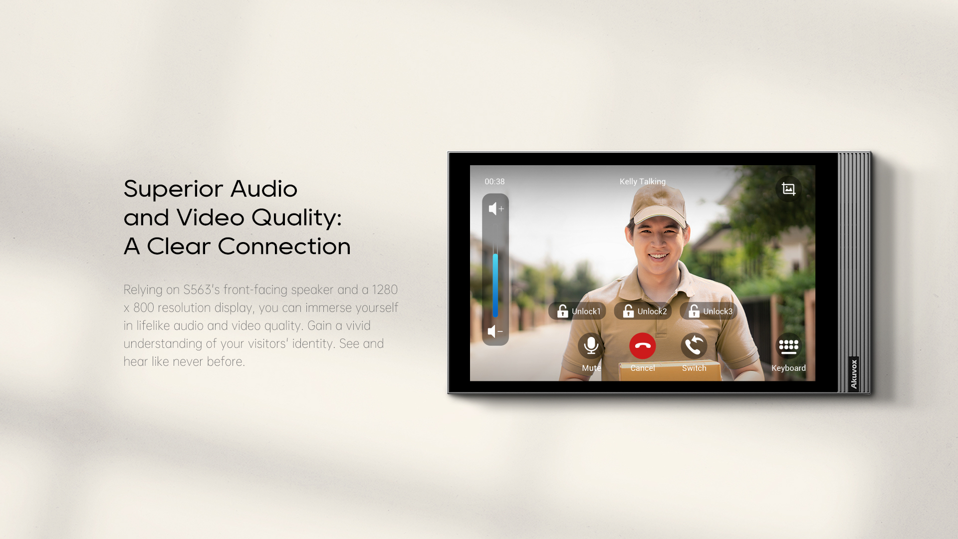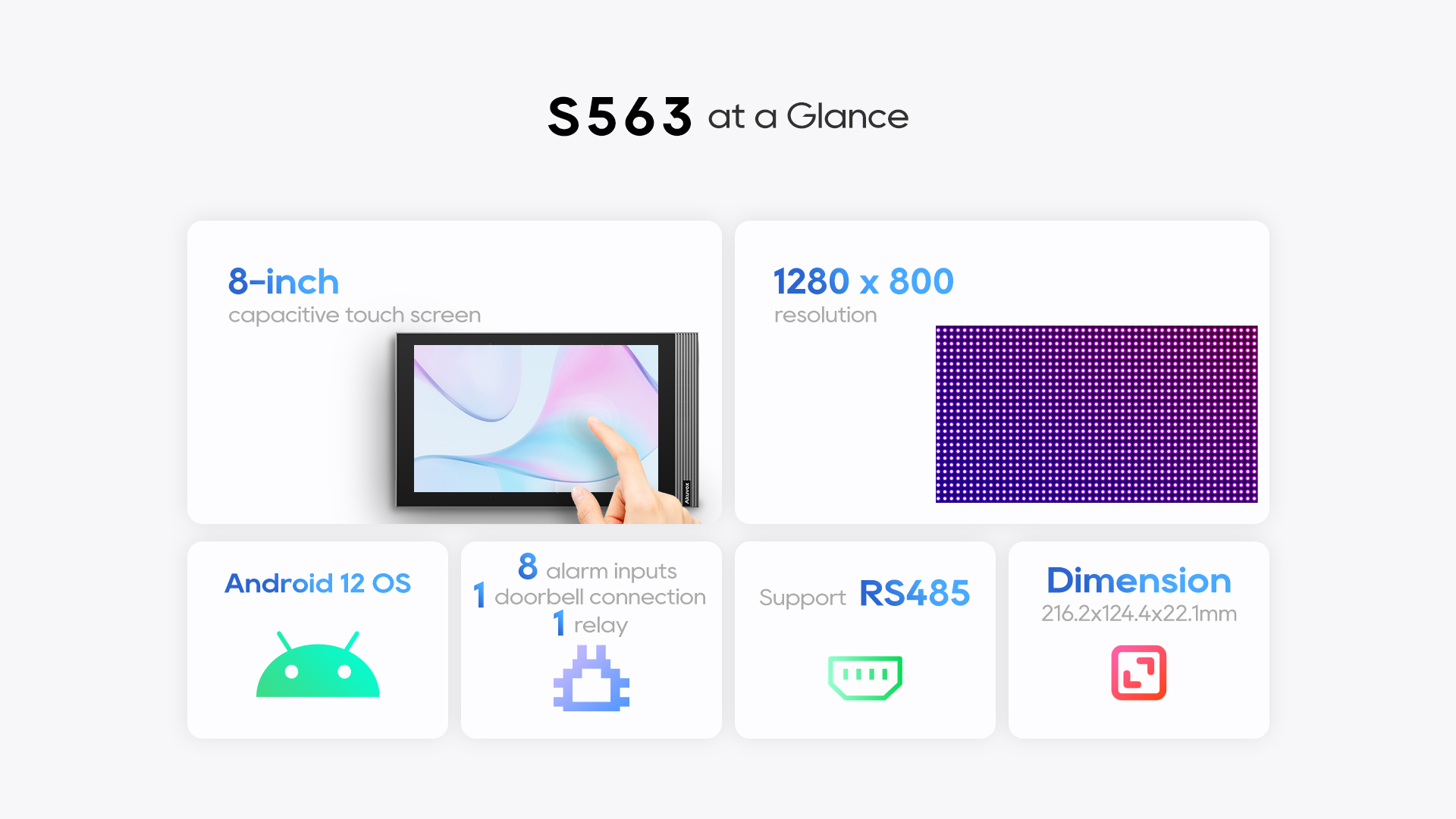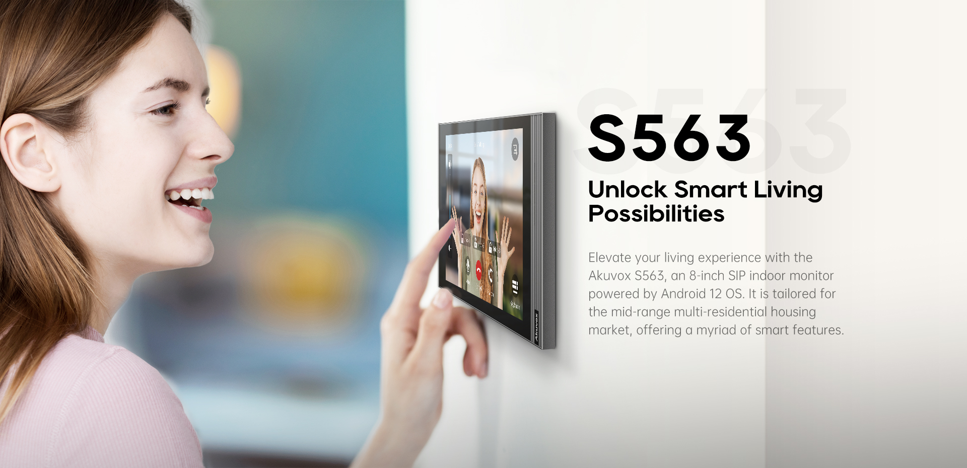 The Akuvox S563 is an 8-inch SIP indoor monitor that runs on the Android 12 operating system. It features an exceptional speaker and a high-resolution touchscreen display, ensuring an unparalleled audio-visual intercom experience.