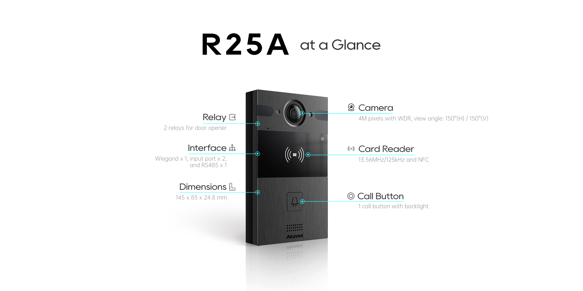 The Akuvox R25A is a single-button SIP video door phone that perfectly combines security, style, and functionality. Designed for residential properties, this device offers versatile access methods, superior image quality, and seamless integration with third-party systems.