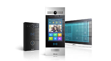 Located at the property's two main entrances, the face recognition R29C touchscreen door intercom is a welcoming experience to the residents and brings much convenience to the older individuals. The user interface is easy to learn and use, and a range of identity authentication options are available, from which residents can choose based on their preferences and user habits. The compact, sleek E11R door phone is installed at each apartment door as an RFID reader, reinforcing the building's security.